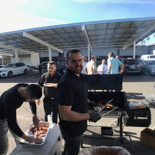 the after-sales management team had started up the grills nearby…