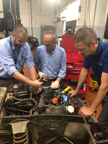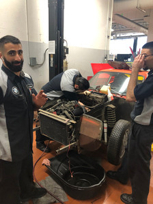 If this project was to be completed, everyone would need to come together, and that they did. Everyone worked on the car to undergo a full mechanical restoration, which included completely rebuilding engine and breaks. From Pasquale, Jason, and Art, our Senior Shop Foreman to all the technicians needed for the repairs, to even interns, everyone wanted to assist in this special surprise for David. Art specially focused on the interior of the car, handcrafting almost everything needed. After copious trips to Hobby Lobby, Home Depot, and even Joann’s, he found the perfect fabric and hand-stitched it to ensure it was perfect, replaced the door panels, and redid the carpet, just to name a few of his contributions.